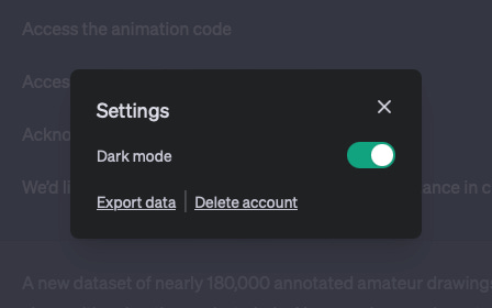 Users can also export ChatGPT conversations making it easier to share prompts and conversation threads. Go to “Settings” in the bottom left corner, and click on “Export data”.
