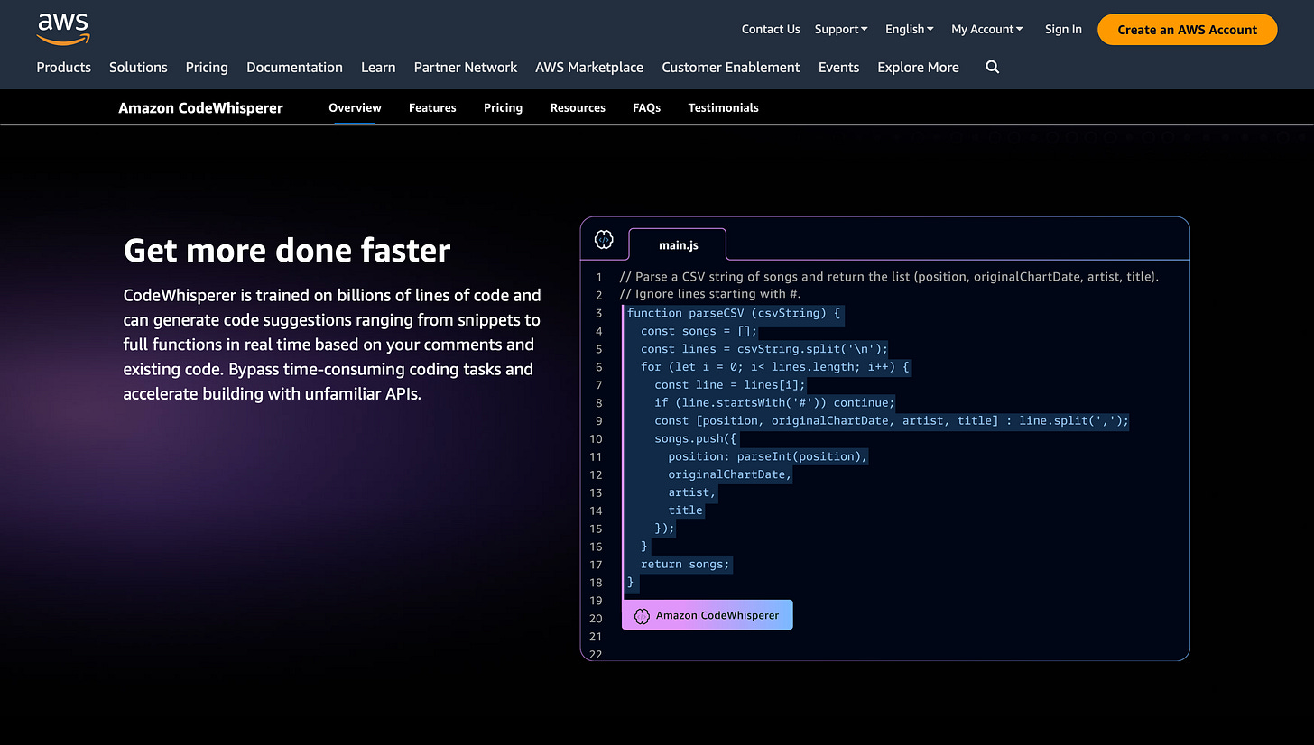 CodeWhisperer, which is Amazon’s version of GitHub Copilot, is trained on billions of lines of code and can generate code suggestions ranging from snippets to full functions in real-time based on your comments and existing code.