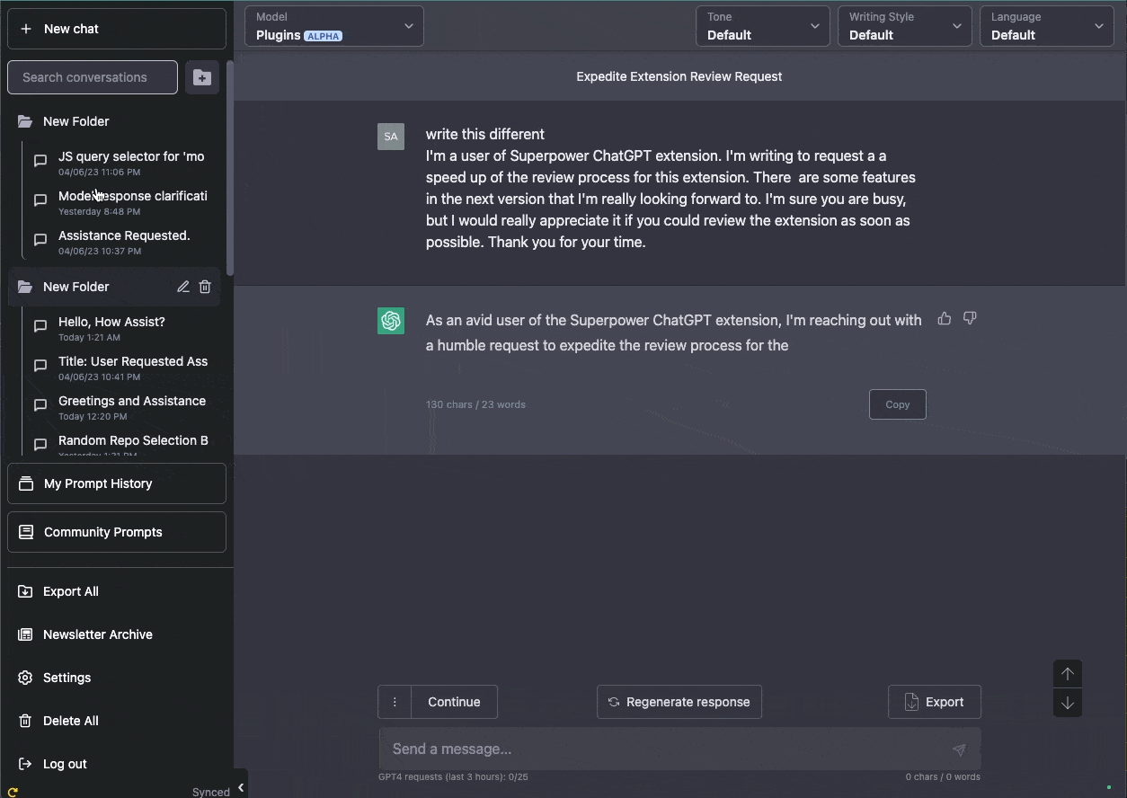 Superpower ChatGPT- Now with Folders, Reordering, Trash, and Search! [link]