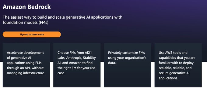 Bedrock lets enterprises use and fine-tune base models from Anthropic, AI21 (European languages), Amazon Titan (new language models), and Stability AI (images) with their own data.Read here [link]