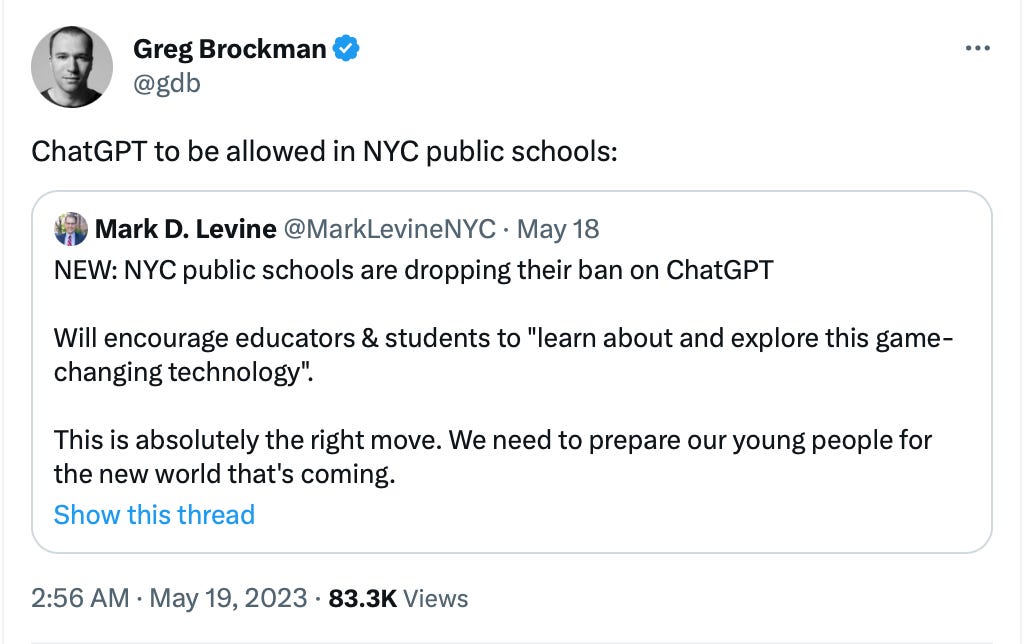 ChatGPT to be allowed in NYC public schools [link]