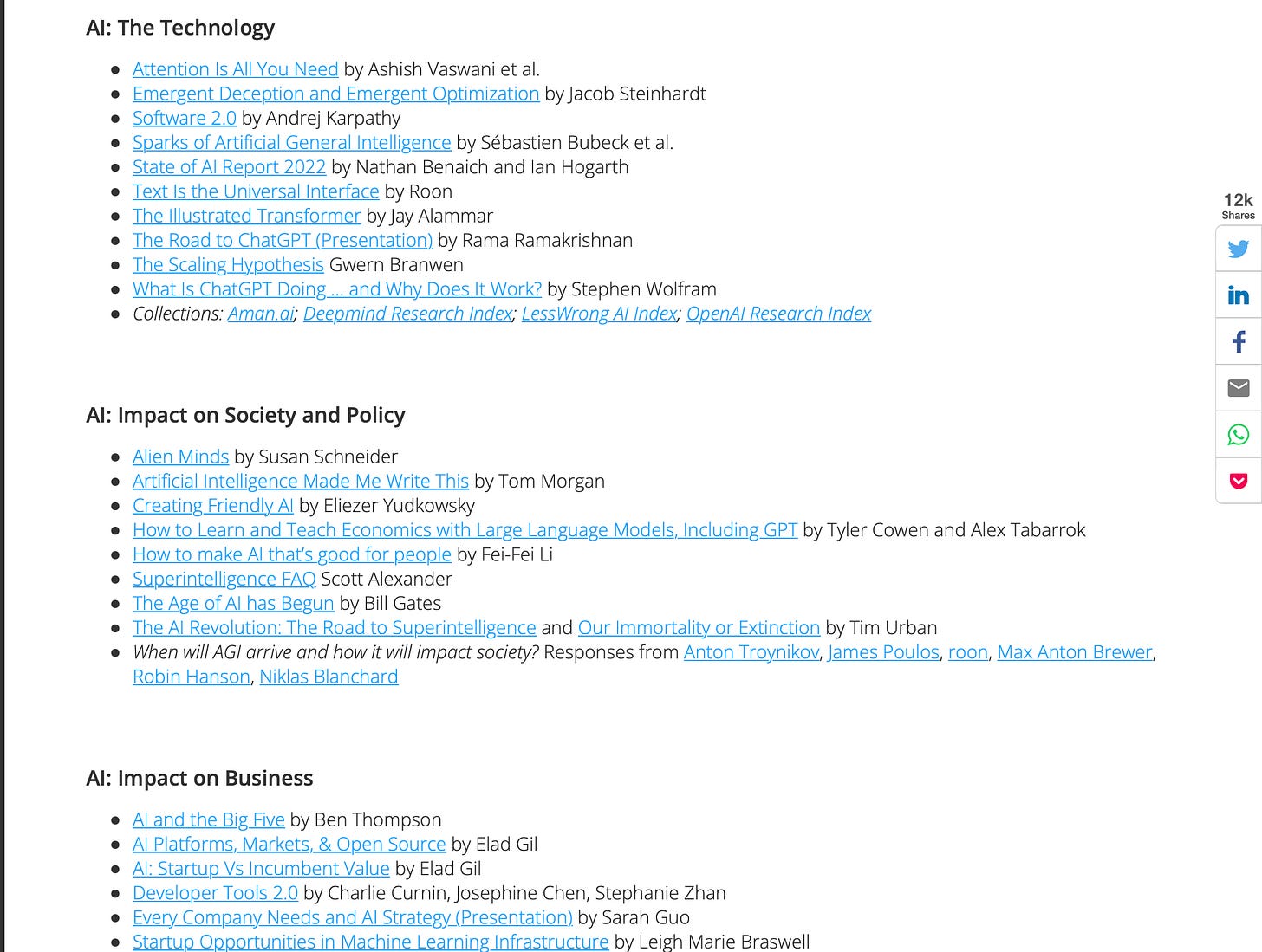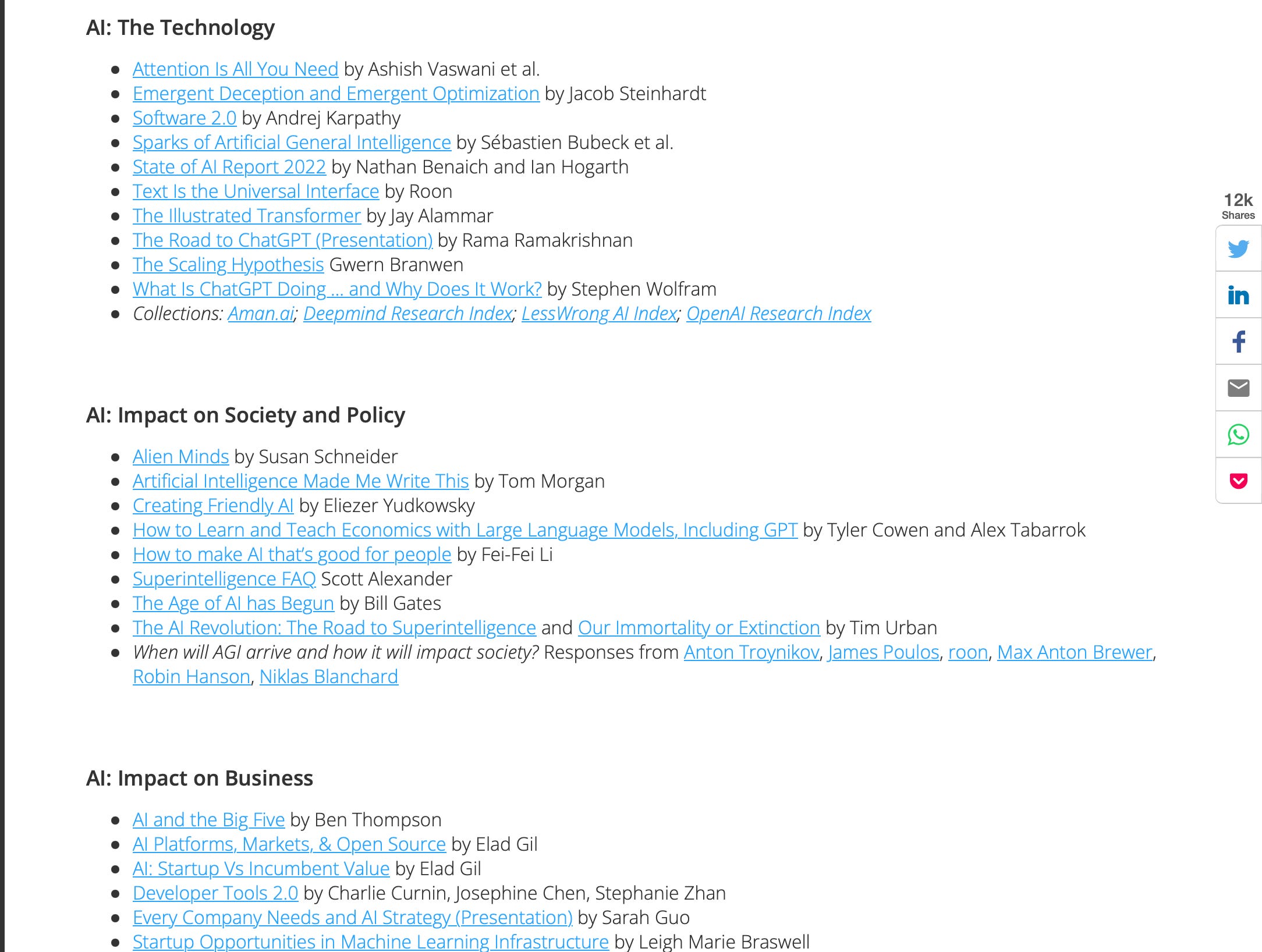 What Lightspeed is reading, listening to, and thinking about AIUltimate AI reading list by Dan Hock [link]
