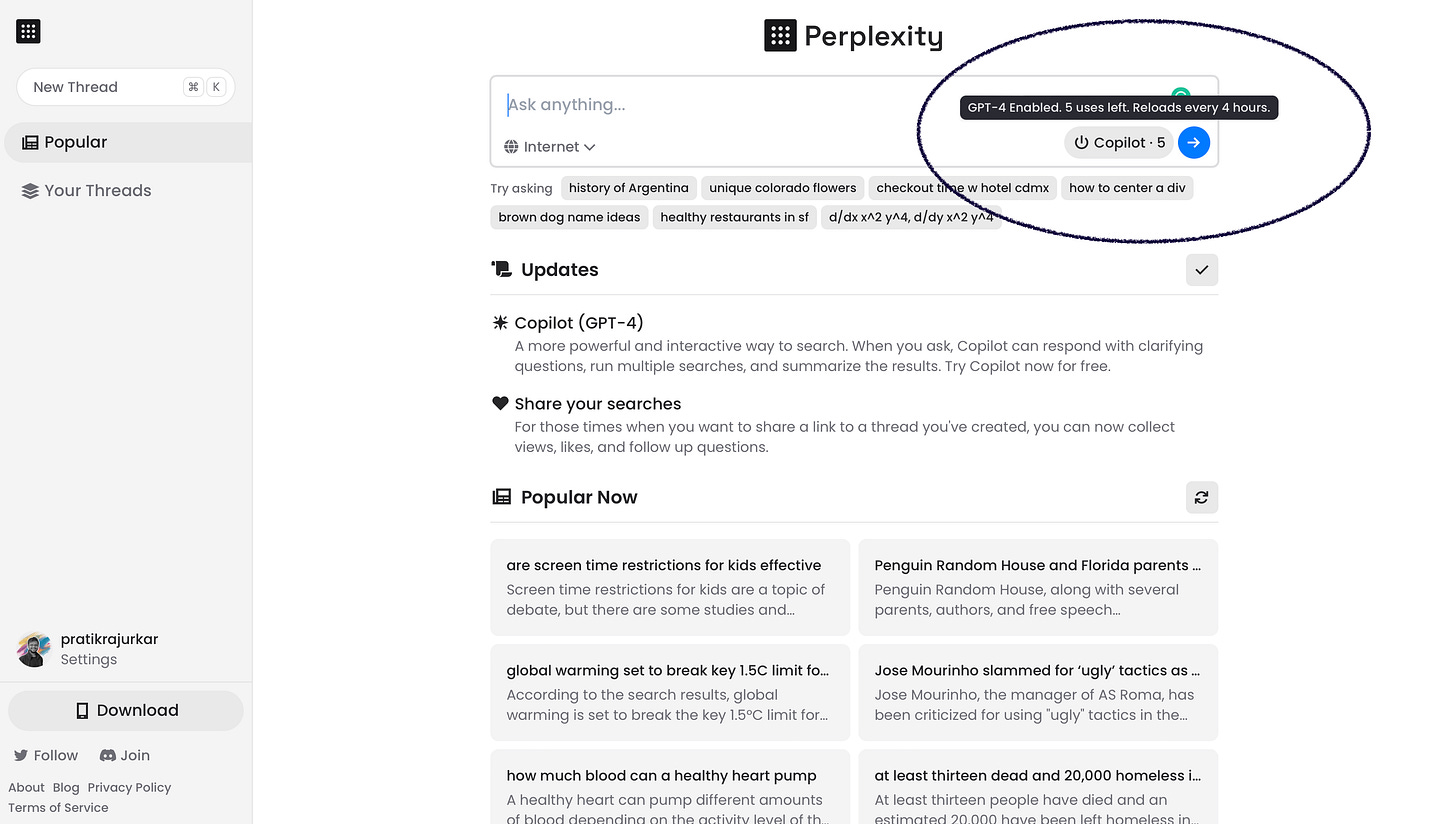 Perplexity Copilot guides your search experience with interactive inputs, leading you to a rich, personalized answer, powered by GPT-4.